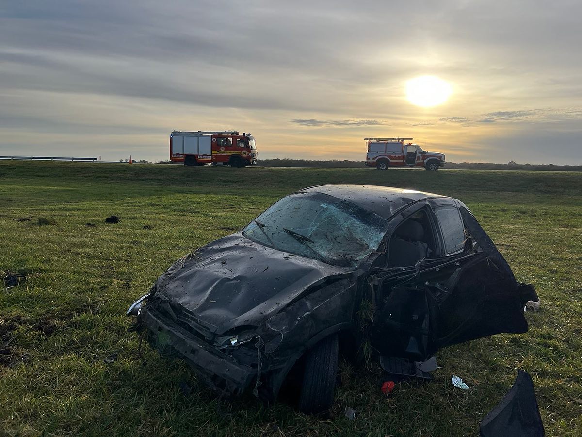 Ruta 56: Impactante vuelco de un auto cerca de General Madariaga